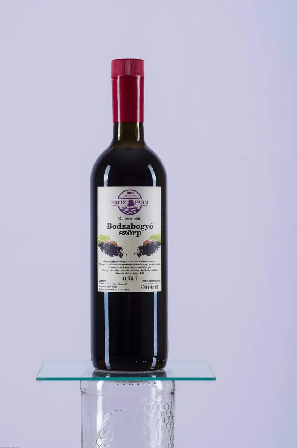 Kistermelői bodza bogyó szörp 0,75L, 100% természetes, semmilyen színezéket, és tartósítószert nem tartalmaz. Az 1:10 hígítási arány miatt egy üvegből több mint 8 liter ital készíthető.